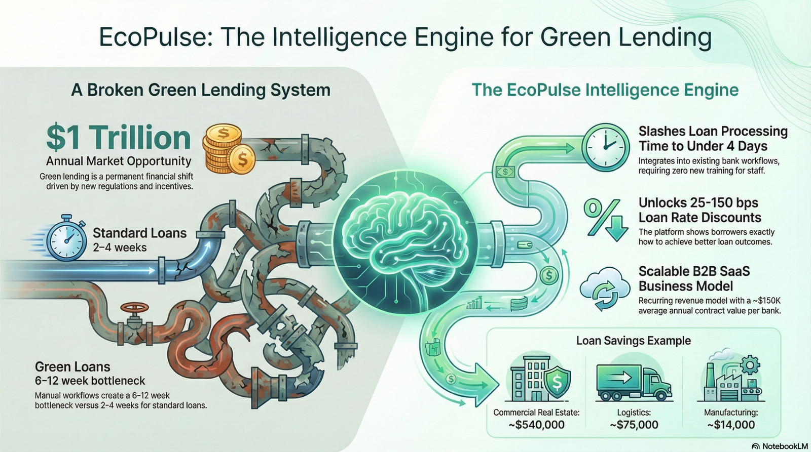At Ecogensolve, we’re building the future of sustainable finance. Our EcoPulse platform transforms green lending, helping banks process loans faster and unlock savings for businesses. We also offer ESG consulting to guide companies toward impactful sustainability, and host eco-friendly events to celebrate and inspire green innovation.